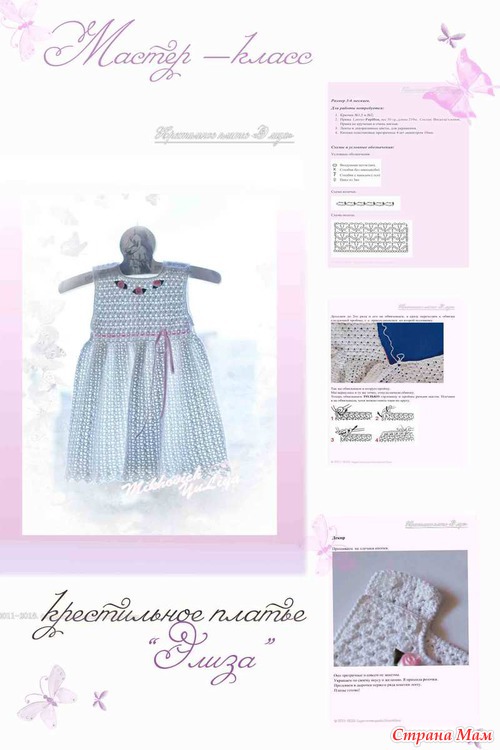 Мастер-класс по вязанию крестильного платья представляет собой файл в формате ПДФ со схемами, пошаговыми фото и описанием процесса вязания.