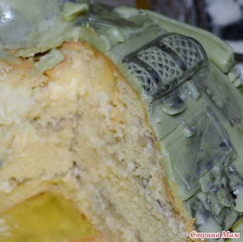 Внутри "Бостонкий бисквит", крем муслин с бананами, под мастику варенка с маслом, мастика молочная с добавлением глицерина - супер в работе.
