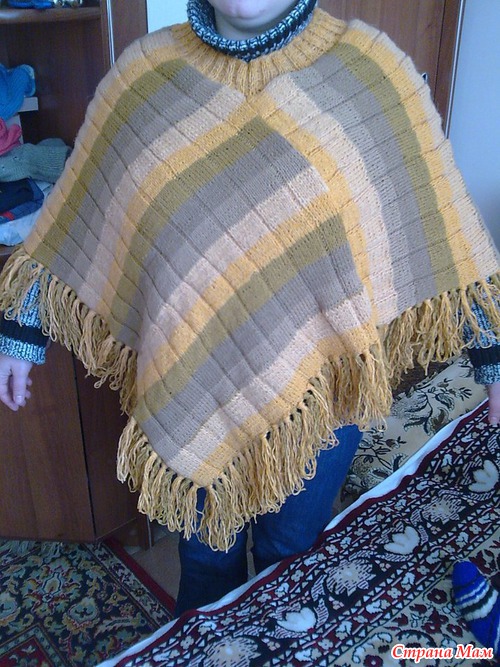 Приветик девчонки, ну вот довязала пончо, увидела в газете "Вестник Прибужья" и загорелась вот что получилось.