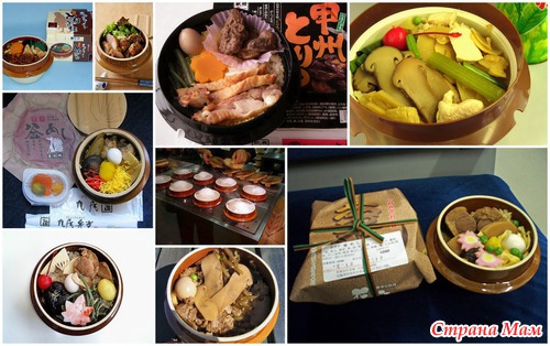 На железнодорожных станциях префектуры Нагано можно купить особый вид бенто «камамеши бенто», который готовится и продается в маленьких глиняных горшочках. Этот миниатюрная копия –на 1 порцию- казанка для варки риса «кама» и дало название для бенто. Слово «меши» переводиться же и как «рис с добавками», так и просторечное еда, принятие пищи в общем. «Меши ико ка?»- Пошли-ка кушать? –позовет вас коллега на обеденный перерыв. Глиняный горшочек при желании оставляют в качестве сувенира. В других регионах могут использовать разовые пластиковые кама, так как керамические довольно тяжелые и их надо выкидывать в определенный вид мусора.**