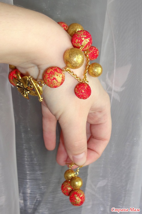 Очень тяжело сфотографировать такой браслет на руке, тем более собственной))) К сожалению в доме одни мальчишки, и нарядить кого-то не удается))) Поэтому только так)))