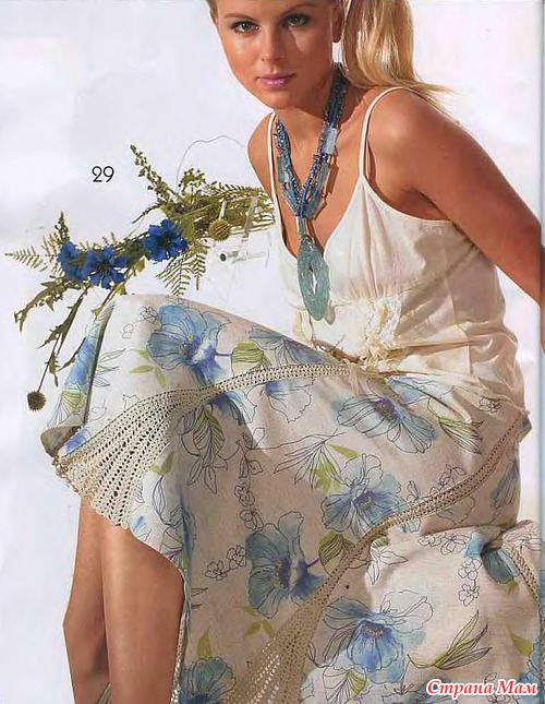 Тэги: юбка, ткань + крючок, комбинированное вязание