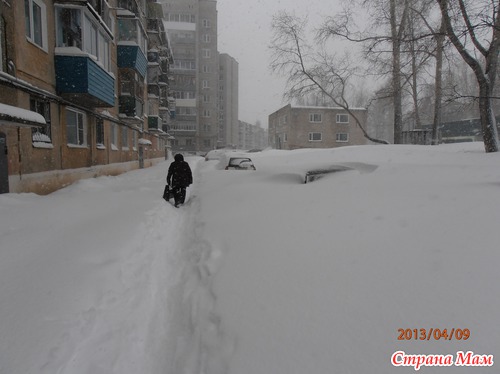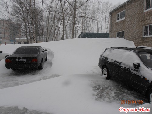 Ой-девоньки-я прям читаю и смеюсь-зима у некоторых вернулась, снежок посыпал. А у нас зима и не уходила. И прогноз не веселый-еще неделя снегопадов. А метель не перестает мести. Выкладываю для обозрениЯ фотографии-на них есть даты. Посмотрите на нашу весну... Это детский сад... На втором фото-гаражи...