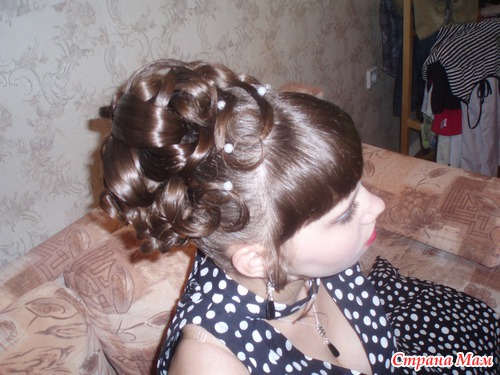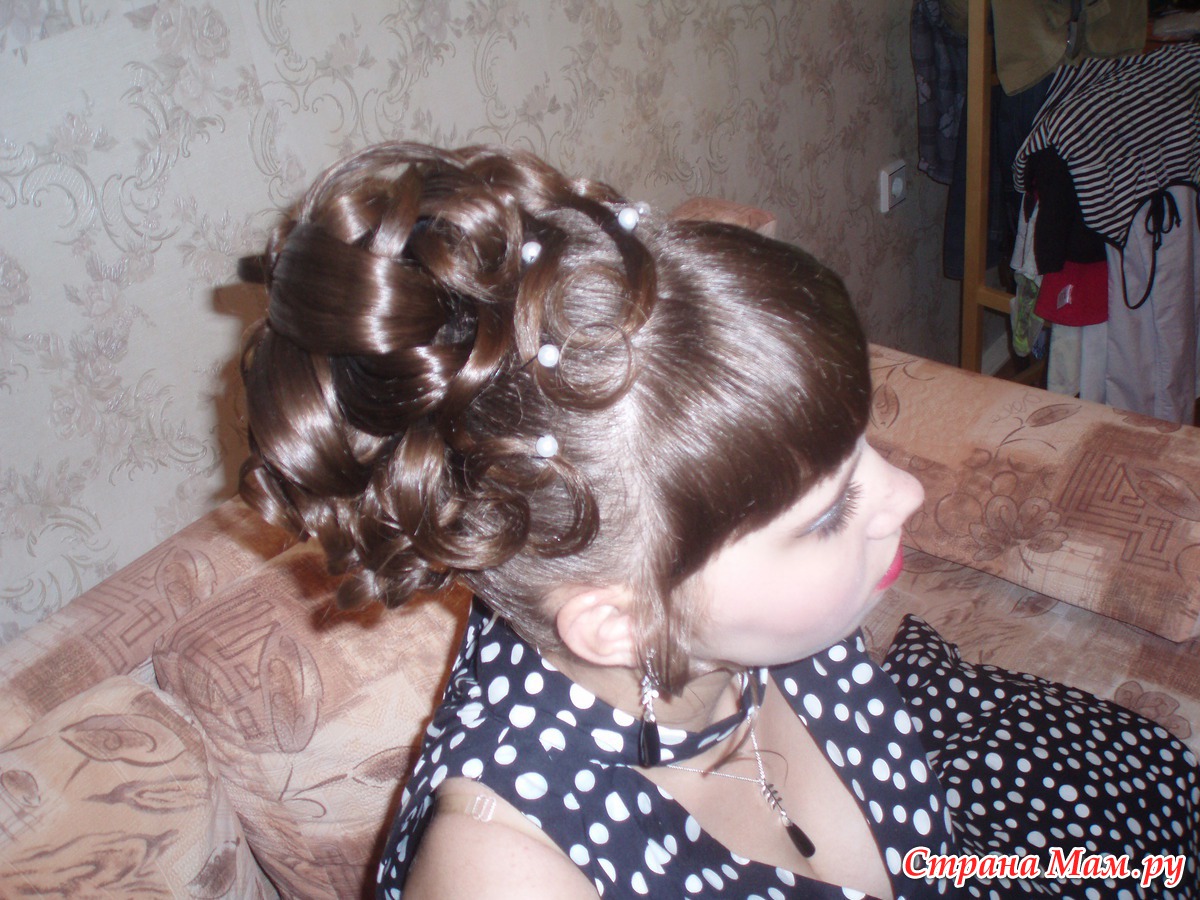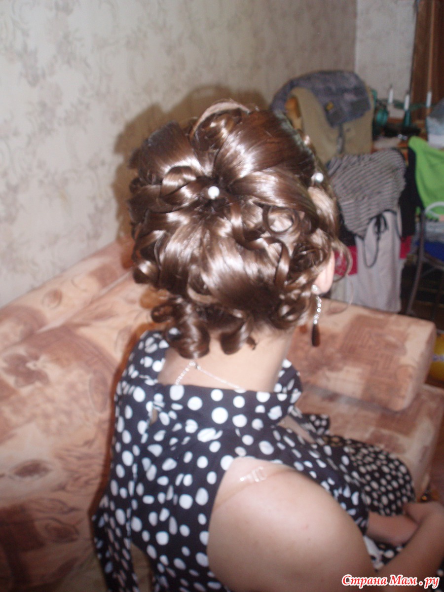 Моя старшая дочь в этом году закончила 9 класс. На причёску ушло около 4 часов. Оцените труд моей подруги.