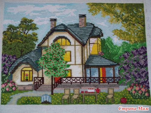 Здравствуйте девочки-страномамочки! Вот хвастаюсь своей последней работой, вчера закончила домик мечты. Теперь буду ждать исполнения. Ещё не оформила, но так как у меня двойная радость, решила показать сразу. Вот вышивка.