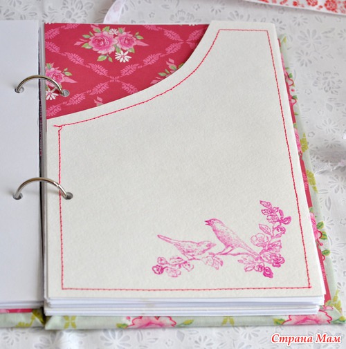 Вполне и даже очень подойдет для рукодельниц! Он практичен тем, что на кольцах! Разжав их вы сможете добавить вырезки, дополнительные странички, удалять ненужные. Также в блокноте есть 4 кармашка из бумаги для акварели, куда вы сможете также помещать вырезки или мелкие выкройки или фотографии! Ткань, бумага на форзацах и украшение на обложке все это взято из дизайнерской коллекции "Тильда". Странички проштампованы разными штампами на весеннюю тематику!