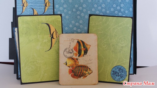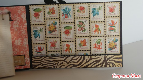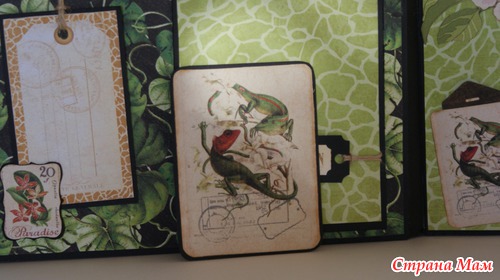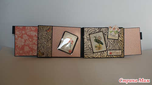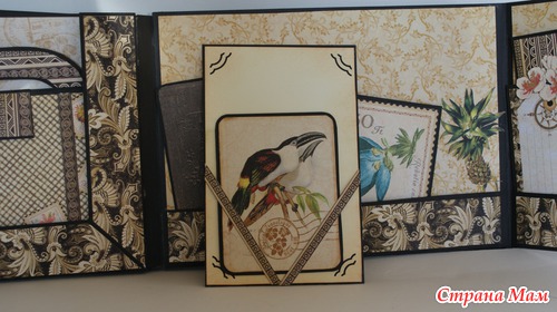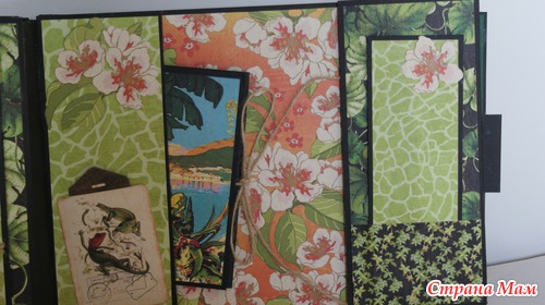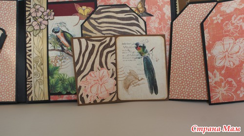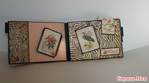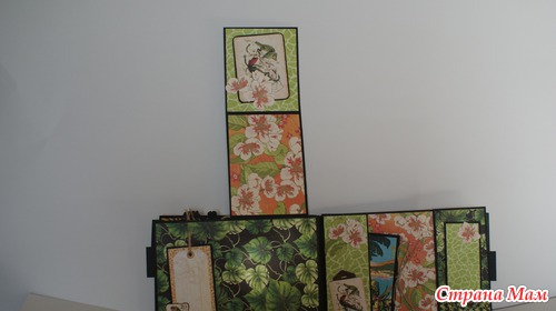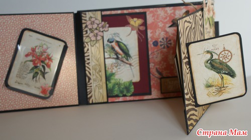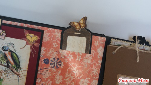 а еще там книжка раскладушка с попугаем, тэг с бабочкой и опять место, куда можно поставить фото или не фото)))