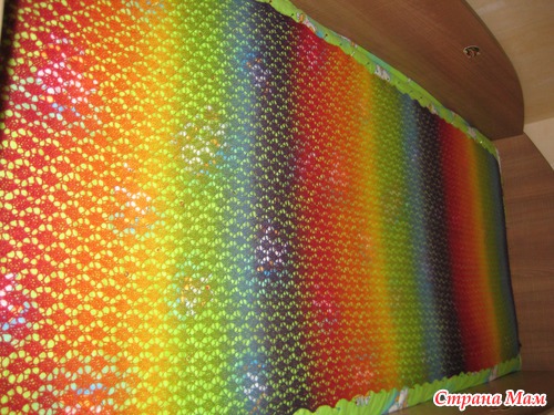 Это поближе. Вязалось очень легко. Но долго, т. к. мой самый маленький карапуз тоже был не равнодушен к Радуге, и все время пытался в нее нарядиться. Поэтому вязала в сончас.