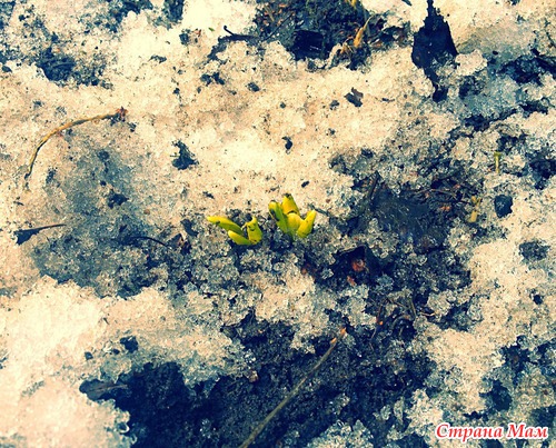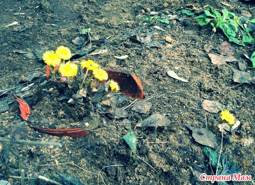 Сегодня с диким восторгом заметила приход долгожданной весны - из-под снега показались ростки подснежников и гиацинтов, а мать-и-мачеха уже вовсю зацвела! Незамедлительно засняла эту красотень на камеру мобильного, немного обработала там же.