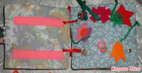 На многих страничках пришиты различные сеточки-карманы.