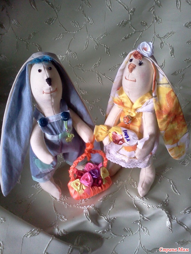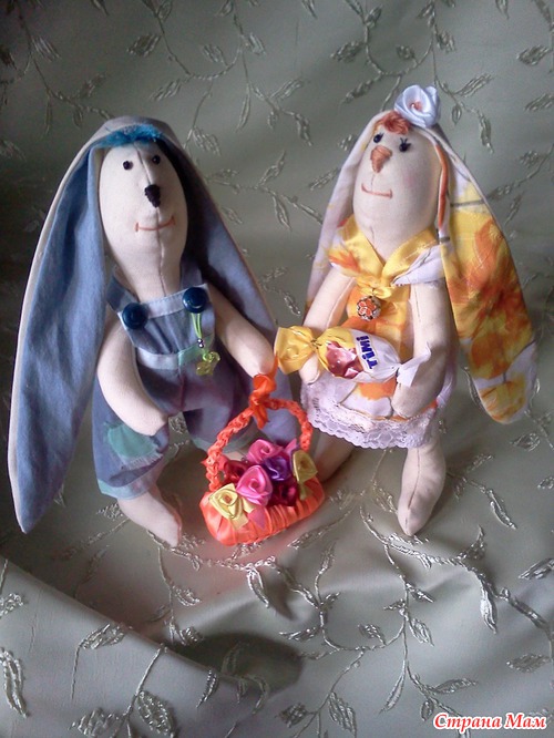 Вот такие зайчата получились у меня. Шить пробовала тильд впервые.