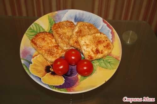 Сыр адыгейский, яйцо, панировочные сухари, кунжут, соль, масло растительное для жарки.