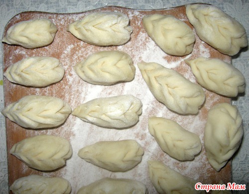 Да еще к тому же на просторах интернета( в который раз убеждаюсь, что для умных людей интернет-это кладезь интересной и полезной информации) нашла различные красивые способы лепки вареников, пирогов, мантов. Просмотрев большую подборку, взялась за работу. Чтобы не опозориться сильно, уединилась на кухне и, как партизан, начала по памяти воспроизводить увиденое. Очень понравился один из способов. Я его назвала "косичка". И вот, что у меня получилось.