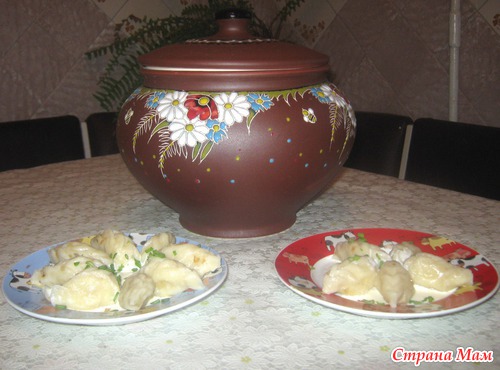Давно я не появлялась на сайте. Но сейчас не об этом. На день ангела мне подарили глиняный горшочек. Уж очень хотелось в таком горшочке подавать домашним обитателям варенички (оригинально, как мне кажется). Но собиралась я аж до прошлых выходных. А таут так захотелось