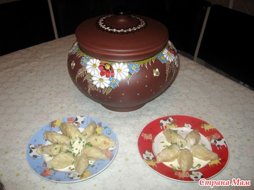 Давно я не появлялась на сайте. Но сейчас не об этом. На день ангела мне подарили глиняный горшочек. Уж очень хотелось в таком горшочке подавать домашним обитателям варенички (оригинально, как мне кажется). Но собиралась я аж до прошлых выходных. А таут так захотелось