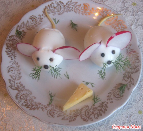 Опять я со своими кулинарными "творениями". На этот раз пробовала делать мышек. Идею подсмотрела в интернете. Но там глаза были использованы на клее и нос был сделан из швейной булавки. Я же хотела, что бы вся мышка была съедобной. Поэтому глаза и нос сделала из горошин черного перца(девчонки их потом просто вынули). И вот, что получилось.