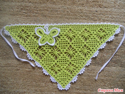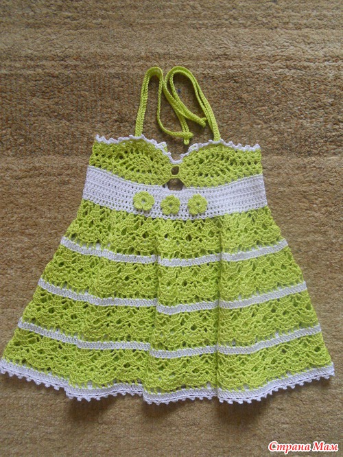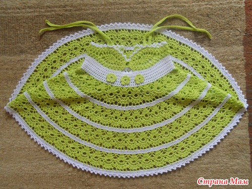 Здравствуйте, девочки! Давно уже не показывалась здесь. Вот поспел заказик. Дали нитки(Салатовые-Ромашка, хлопок и Белые-Пехорка, детский хлопок) Выбор модели был на мне, так что порылась, взяла пару узоров и слепила из того что было. Пехорка мне не очень понравилась. Слишком толстая нить, поэтому использовала очень мало. Цвет так и не передался на фото, т. ч не судите строго. В реале он более насыщенный