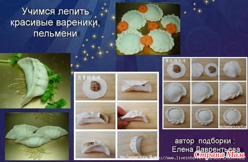 Способы лепки вареников, пирогов, мантов.