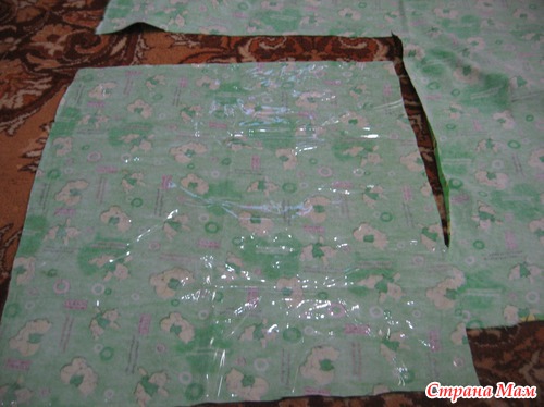 Сначала вырезаем нужного нам размера клеенку, такого же размера материал в 2-х деталях