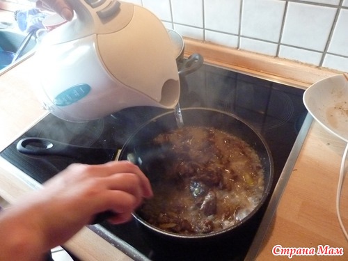 посолить, налить немного воды
