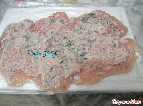 Этой смесью смазала мясо.(часть смеси оставила).