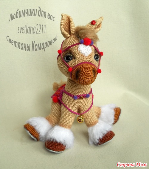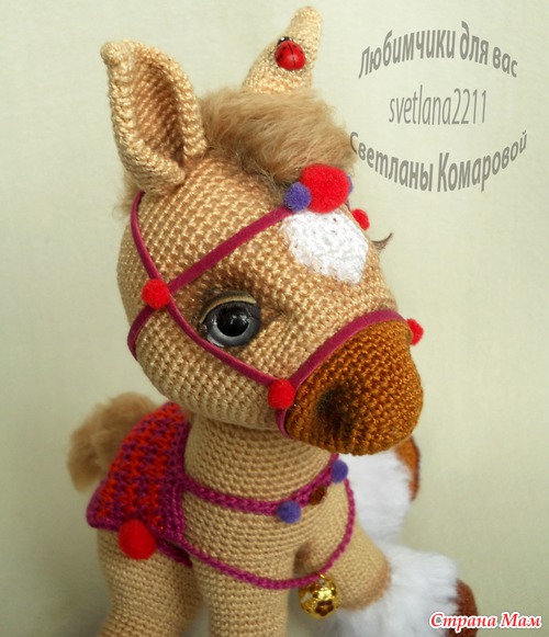 Связана из хлопка. Поза зафиксирована. Не для малышей! Заняла 3 место на конкурсе "Моя прекрасная лошадка" 21 см Материалы:хлопковые нитки, наполнитель, пластик, декоративный шнур, бубенчик, тонировка, реснички Читать полностью