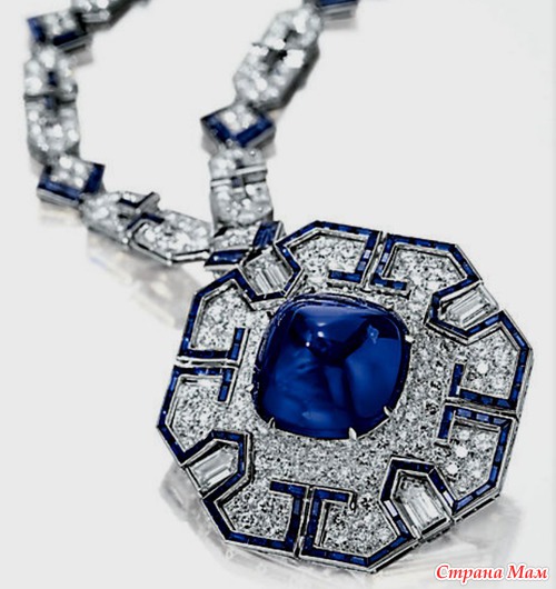 Сапфировый сотуар BVLGARI. Сотуар с сапфирами и бриллиантами от BVLGARI – подарок Ричарда Бертона, сделанный в 1972 году. Комплект с сотуаром в стиле ар-деко с восхитительным конусообразным сапфиром-кабошоном весом в 52.72 карата, который был подарен Элизабет Тейлор Ричардом Бертоном на ее сорокалетие в 1972 году. Позже она дополнила сотуар кольцом, создав замечательный комплект.