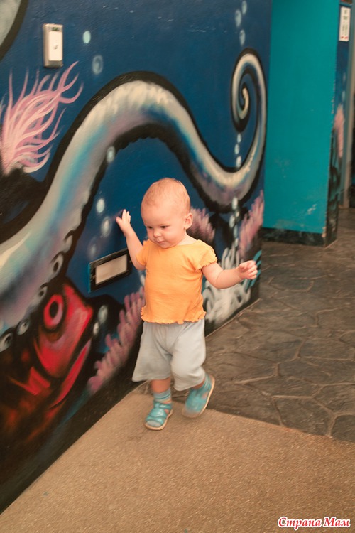 даже в океанариуме ребёнок нашёл горочку...
