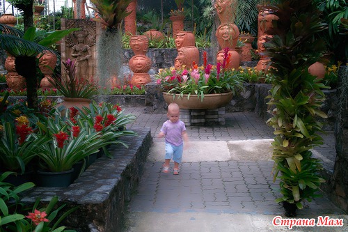 Ах да! С нами же приключилась дурацкая история во время этих экскурсий. )) В нашем кондо среди отдыхающих было много русских. Я вообще человек не очень общительный, скорее интроверт. А вот моя напарница – очень даже наоборот. Она знакомилась и расспрашивала обо всём всех встречных русских – кто, куда, откуда, когда… и познакомилась она так с девушкой Машей из Хабаровска (почти земляки ведь!), которая тоже зимовала с малышом, но помладше наших. Они с мамой уже месяца полтора жили здесь и никуда, кроме магазинов не ездили. Решив сделать доброе дело, напарница предложила Маше разделить с нами парочку экскурсий. Ну ладно, в океанариуме они заблудились в лабиринтах (хотя где там теряться-то? его за 5 минут обойти на два раза можно, это ж не осакская громадина, в конце концов!), мы с Максом у входа полчаса тусовались (хорошо, что было шоу выдр, посмотрели на зверушек). Но в саду орхидей рассеянность девушек превзошла все ожидания. В сад мы ездили с общим гидом. Слушали, смотрели всё совместно до шоу слонов. Обычно этим шоу заканчивается посещение сада, но наш автобус опоздал, поэтому мы пришли сначала на шоу слонов, а потом собирались продолжить экскурсию в остальную часть сада. О чём гид всем популярно объяснила, уточнив, что встречаемся на том же месте, откуда входили на просмотр (благо, группа небольшая, человек 8 ). Мы с Максом вышли раньше, потому что он стал бузить (решили посмотреть на слонов без шоу), и я упустила из виду девочек, но ко времени пришла на место встречи. Вышли все, кроме Маши и моей напарницы. Ждём пять минут, звоним по всем телефонам – их нет, телефоны выключены. Приехали! Ждём ещё пять минут и решаем, что надо двигаться дальше (предполагалось продолжить осмотр на открытом автобусе), а девочек ищем походу. Едем, гид нам вещает о красотах и памятниках, приезжаем к саду кактусов (дальше планировались регулярные сады – копия Версаля и ещё несколько символических мест), тут девочки звонят гиду. Выясняется, что они вышли не в ту дверь! В общем, гид, оставив нас без экскурсии, бежит через весь сад (а он не один километр, между прочим) спасать заблудившихся, дав инструкцию водителю довезти нас до места, куда она приведёт девочек… Походив по парку кактусов, мы поехали мимо регулярных садов к смотровой беседке. Едем в молчании, а я сидела как раз рядом с микрофоном гида, и деть спал. =) Решила продолжить экскурсию, раз мои спутницы накосячили (неудобно как-то перед собравшимися), рассказала, что знаю про регулярные сады (благо мы по ним неоднократно проходились в универе). После моего бенефиса экскурсия была продолжена практически без потерь (гид нам ещё много занятного рассказала на обратном пути, например, что самцы слонов до достижения зрелого возраста, считай возраста для продолжения рода, балуются гомосексуализмом… =_= хм, однако) В общем, после этого случая, напарница моя решила Машу больше к массовым выездам не привлекать. Но возилась с ней до самого отъезда (Маша уехала где-то на неделю раньше нас).