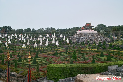 регулярные сады, прекрасно вплетены в буддистско-индуистский антураж