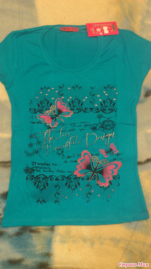 Эта футболочка ярко бирюзовая. Ткань мягусенькая, приятная на ощупь