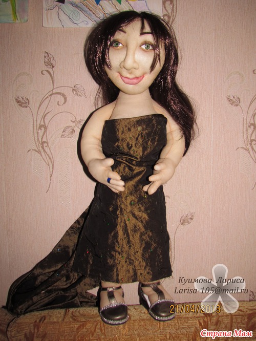 Добавляю фото куклы в этих туфлях, платье будет из этой ткани.