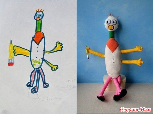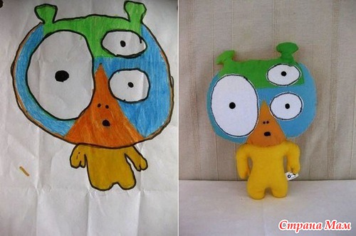 Впервые увидела идею игрушек по детским рисункам на блоге у Анны Румянцевой. Но тогда она меня как-то не вдохновила. Но сейчас смотрю - вроде бы ничего. И в голове уже идеи забродили