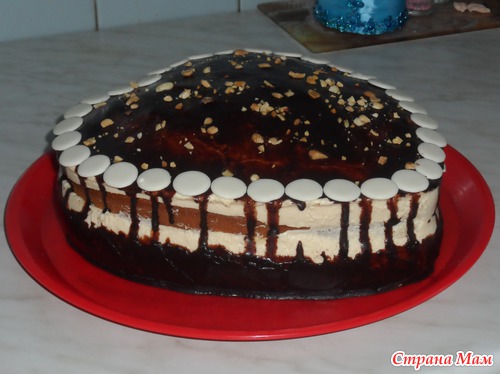 Для украшения растопила на водяной бане шоколад с маслом и залила наш торт