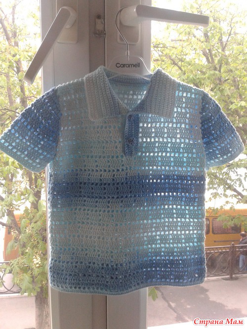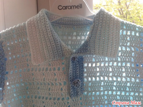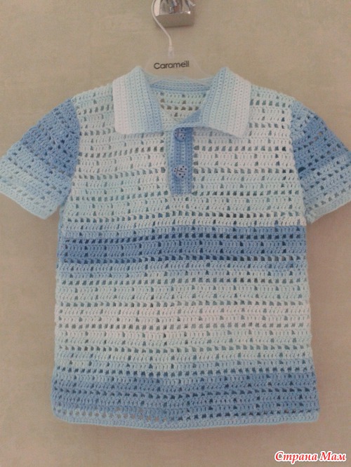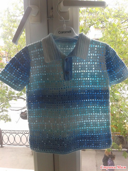 очень быстро связалась футболка-поло в филейной технике.