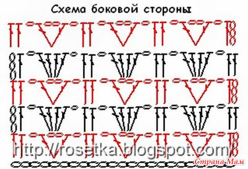 12-й ряд – ряд ССН это уже первый ряд боковой части панамки, где прибавления не делаются. После него мы начинаем вязать боковую часть вот по этой схеме.