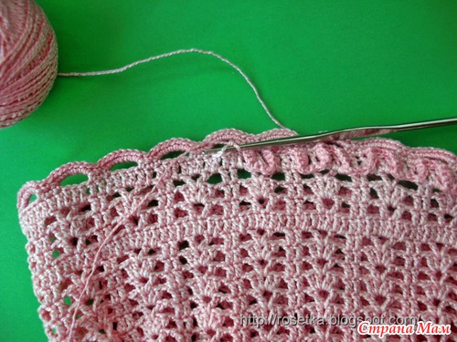 ССН вяжем прямо под арки и лишь там, где они приходятся на верхушки ССН предыдущего ряда – вяжем в верхушку этих столбиков, т. е. в саму петлю.