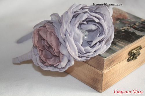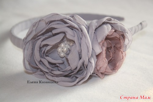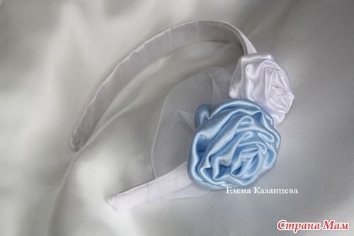 Это мои первые ободки в мягкой технике, особенно понравилось делать розочки из атласа