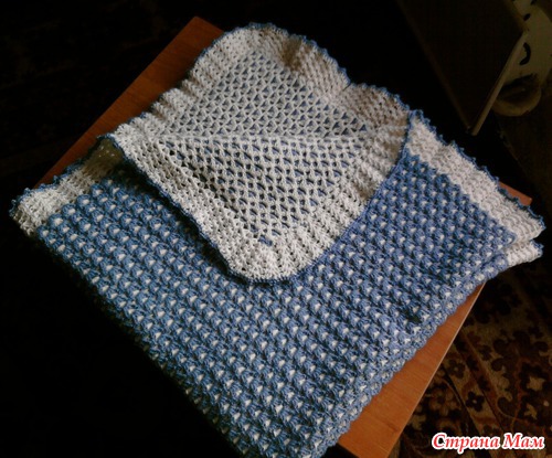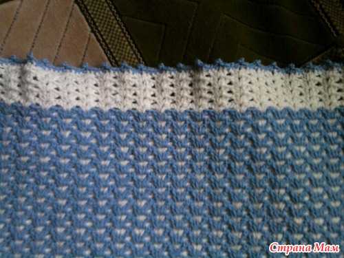 Недавно у меня появился внук. На выписку из роддома связала ему комплект (https://www.stranamam.ru/post/5183186/), а вот плед тогда не успела довязать. А вот сейчас довязала и плед. Вязала вот таким узором https://www.stranamam.ru/post/3930920/. Вязала очень-очень долго. Зато плед получился мягенький и тепленький. Пряжа GAZZAL Baby Wool - Масса: 50 г Длина: 200 м Состав: 40% мериносовая шерсть, 20% кашемир, 40% полиакрил. Ушло много. Голубых и белых по 8 моточков. Размер пледа 85 Х 90 (см)