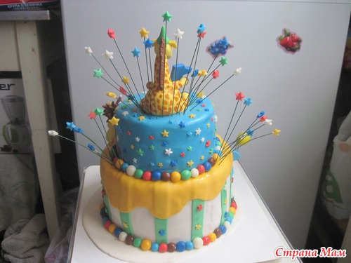 Получился на славу. А надписи, лично я предпочитаю вырезать ножничками из полоски тонкораскатанной мастики. Тогда можно приклеить и ровно
