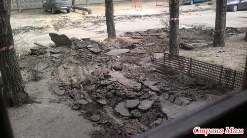 трактора, самосвалы, рабочих полный двор, по машинам ходят долбят и орут "отгоняйте машины!!!", у нас их 2, да и у половины дома машин по 1-2 в семье... кому достучаться не смогли, машины разволокли куда какую. Естественно у всех паника, никаких объявлений не было и никого не предупреждали ни о каких работах. Думали бардюры поменяют и все. Ага, счаз! Не тут то было! Сегодня просыпаюсь от очередного грохота около нашей двери(мы на 1 этаже живем и дверь отдельная рядом с подъездом), выглядываю в окно и вижу что к двери нашей в принципе теперь не подойти. И такая же песня вокруг всего дома