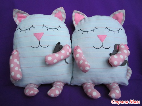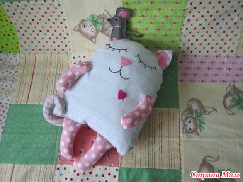 Сшила подушку-котика дочери в подарок. Идея не моя, в интернете полно таких котиков. Пока не отправила посылку, сын все поглядывал на подушку и вздыхал. Спрашиваю: и тебе такую надо? На что мой великовозрастный сынуля отвечает: Хотелось бы. Сшила и ему.