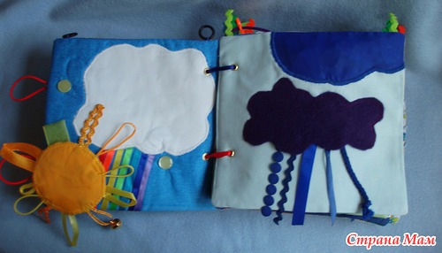 Солнышко двухстороннее (болонь и флис). Тучки также 2 видов (болонь, фетр). Одна тучка шуршит, другая карман для дождика