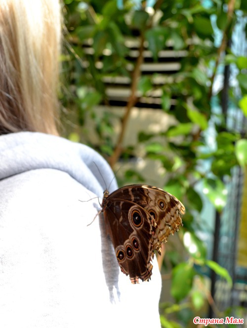 На девушке одна из бабочек каталась всё время пока