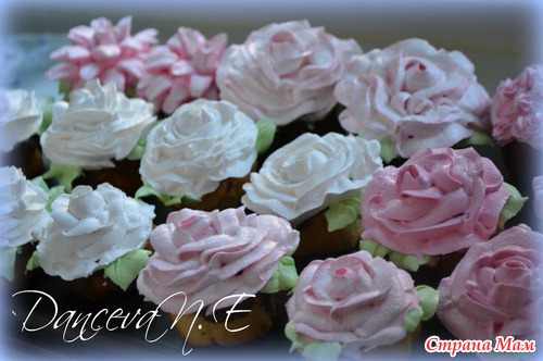 Пару дней назад мучала масляный крем,а вот решила попробывать белковый.ну и цветы,раньше вообще не делала,а тут таак охота научиться.