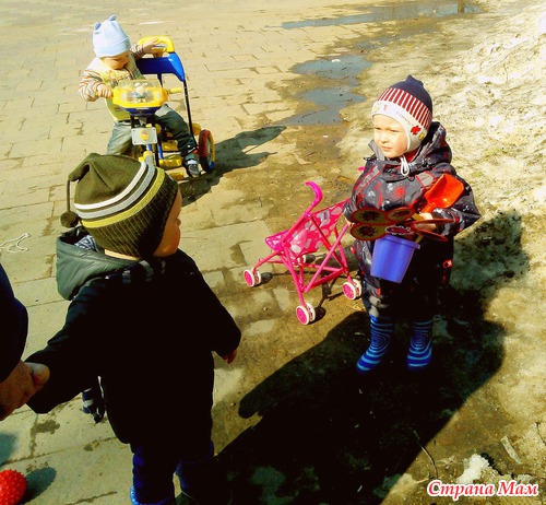 А вот так Ваня у меня жадничает. Наберет все свои "вещички" и с угрожающим видом смотрит на потенциального отнимальщика *)))