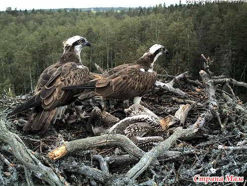 Мне одной кажется, что отец сидит с птенцами уже несколько часов, а мать с рыбой не прилетает? Мне кажется они уже ослабли от голода. Чуть не реву, жалко малышей... Хоть бы папаша слетал за рыбкой малышикам. И что с мамой?