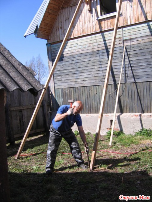 Там наверху вбиты крюки и к ним крепится лестница, но армянское приспособление удобней