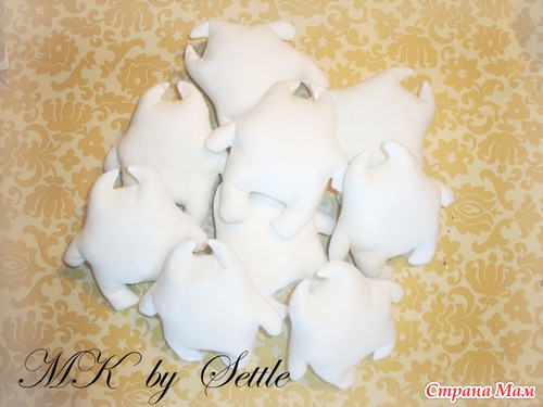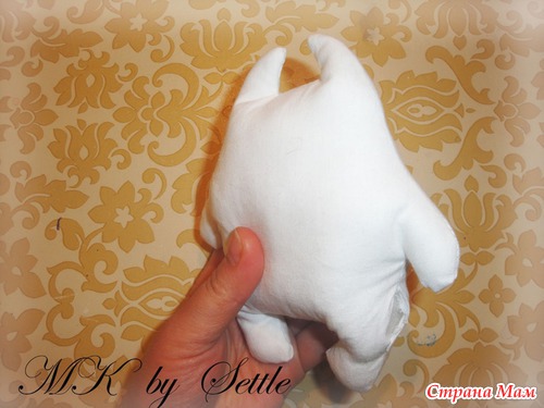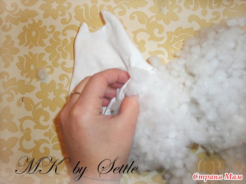 Набиваем котика наполнителем, пока он не станет достаточно упитанным.