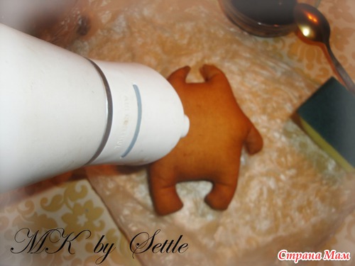 Чтобы избежать некрасивых разводов, сразу же приступаем к сушке игрушки. Это можно сделать с помощью фена.